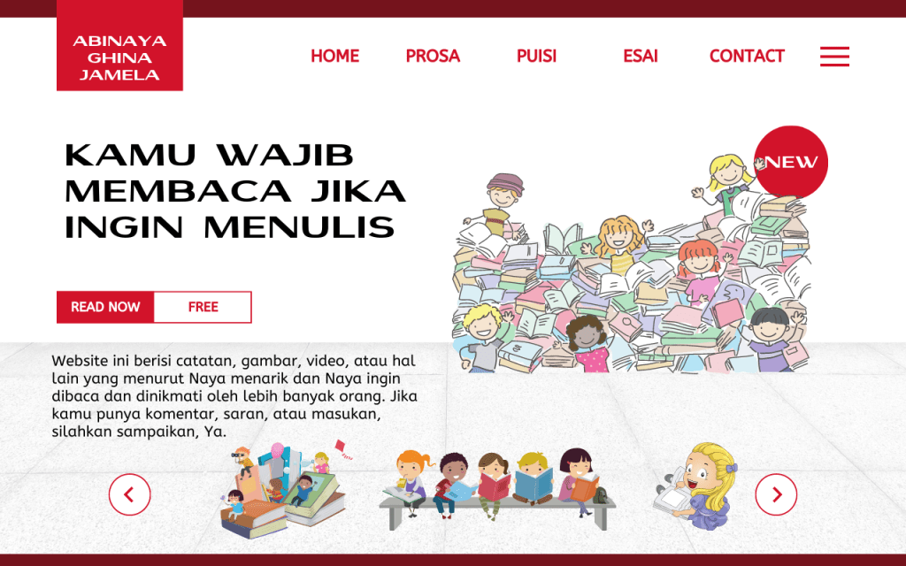 Aku sering kali mendapat pertanyaan, Apa yang bikin Naya suka membaca dan menulis? Karena sering mendapat pertanyaan semacam itu, kupikir itu hal yang penting dan perlu untuk dituliskan. Tapi tentu saja aku perlu bercerita sedikit mengenai masa kecilku, ketika masih berumur tiga atau empat tahun.